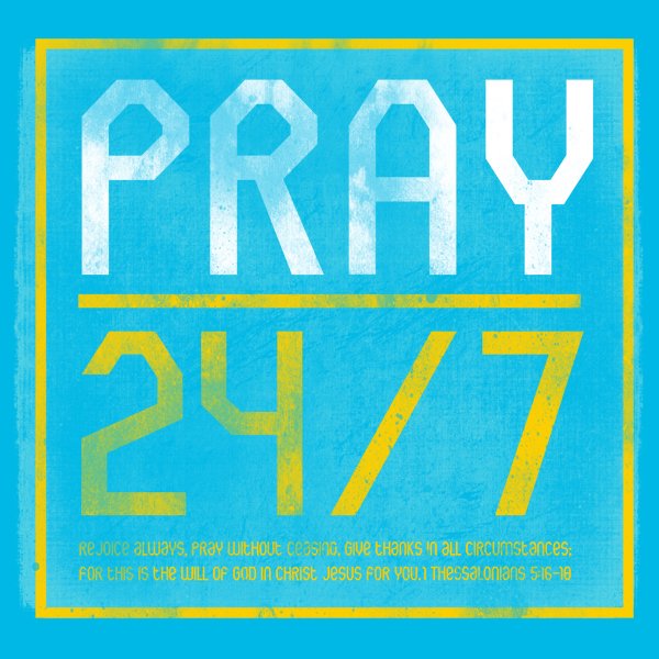 100% preshrunk cotton 5.4 oz. athletic t-shirt. Pray 24/7. "Rejoice always, pray without ceasing, give thanks in all circumstances: for this is the will of God in Christ Jesus." 1 Thes. 5-16-18